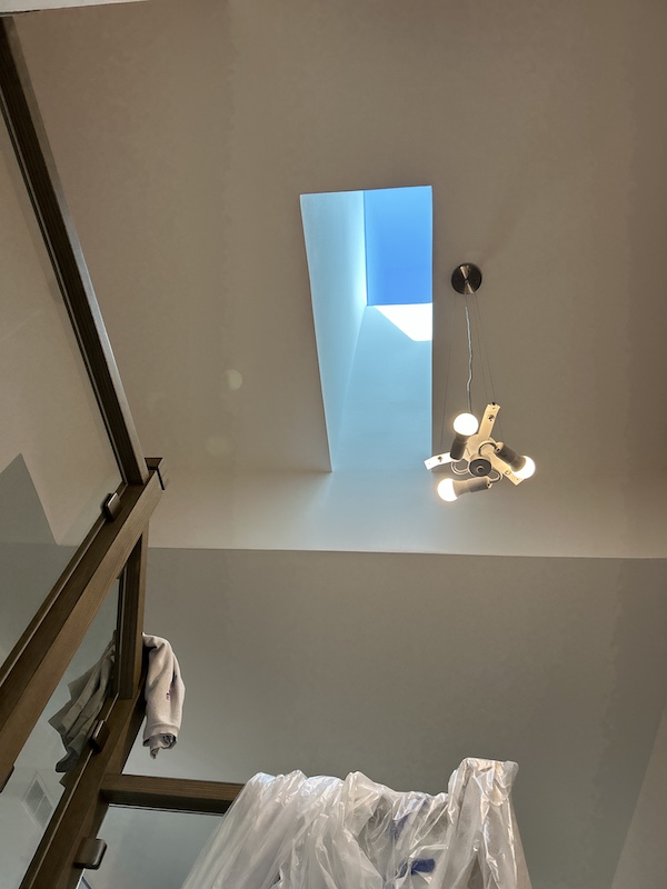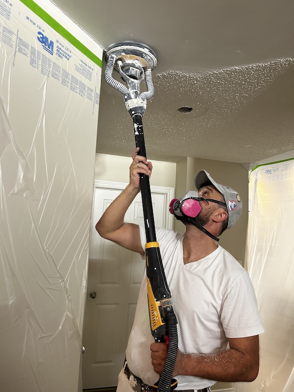 Our clean, multi‑step process leaves ceilings smooth and paint‑ready. We seal, wet‑scrape to minimize dust, skim coat, detail sand, and prime for a fresh, modern look.